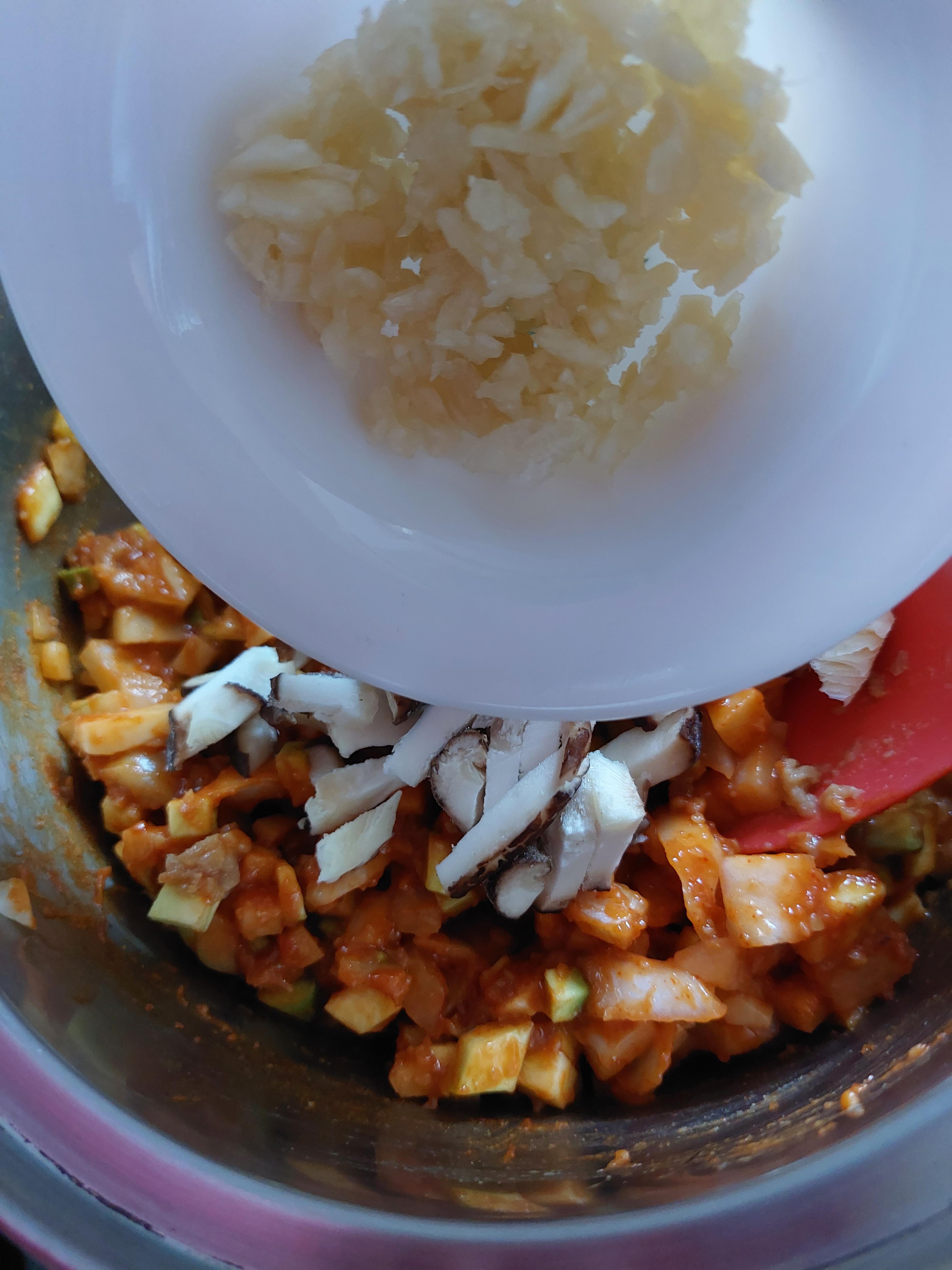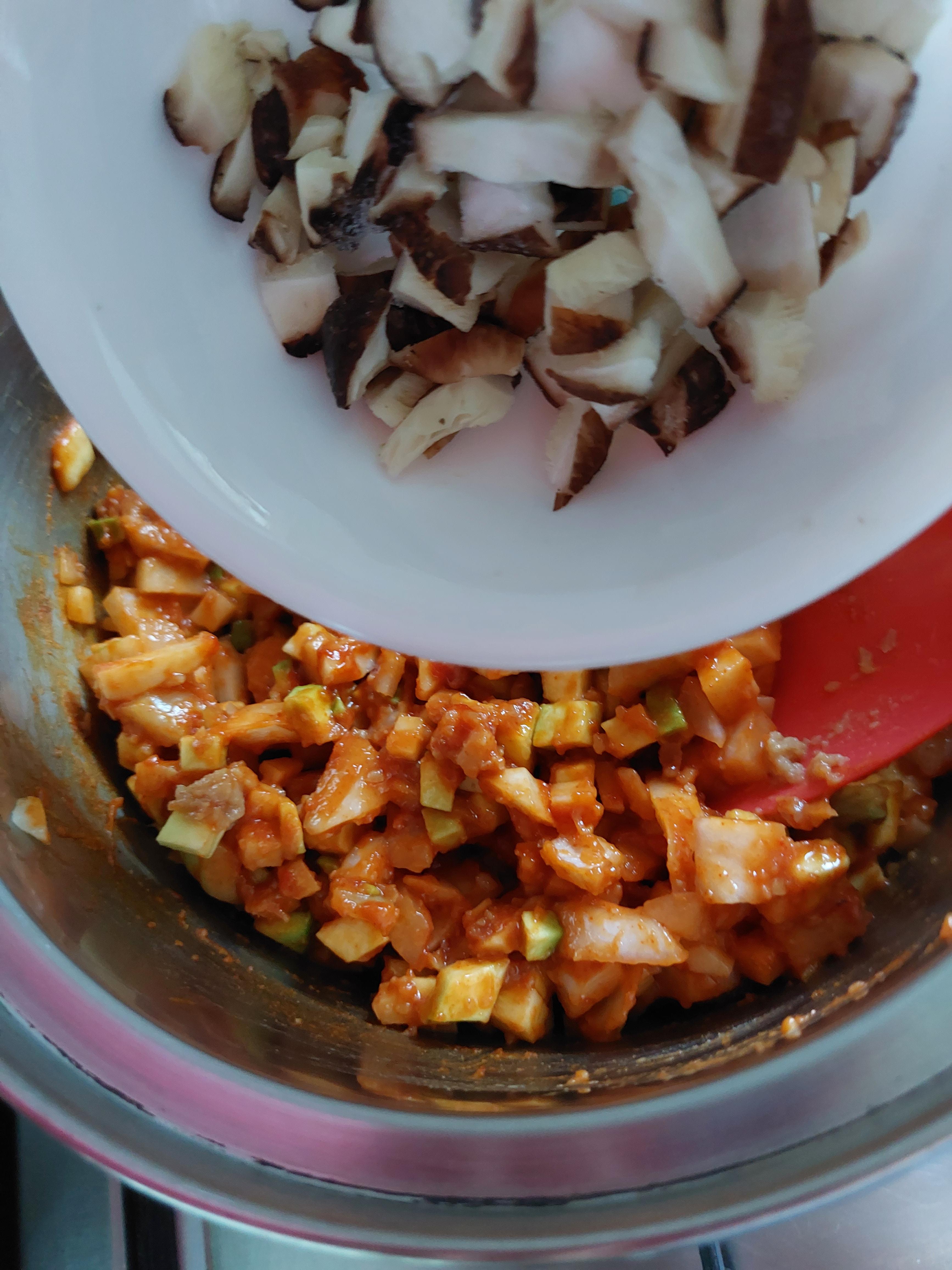 1차 볶아지면 표고버섯을 넣어준다.