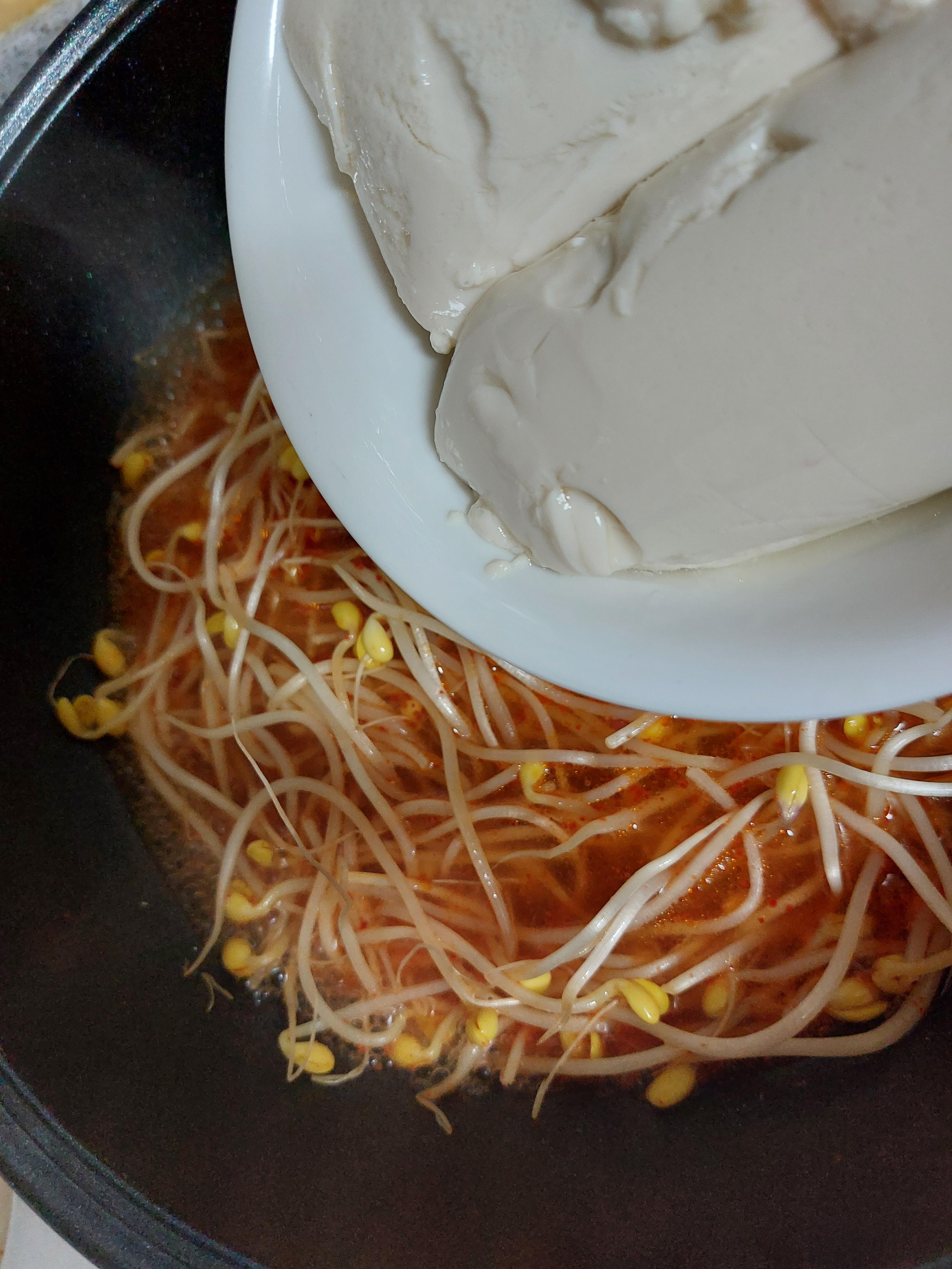 국물이 끓으면 콩나물을 넣어준다.