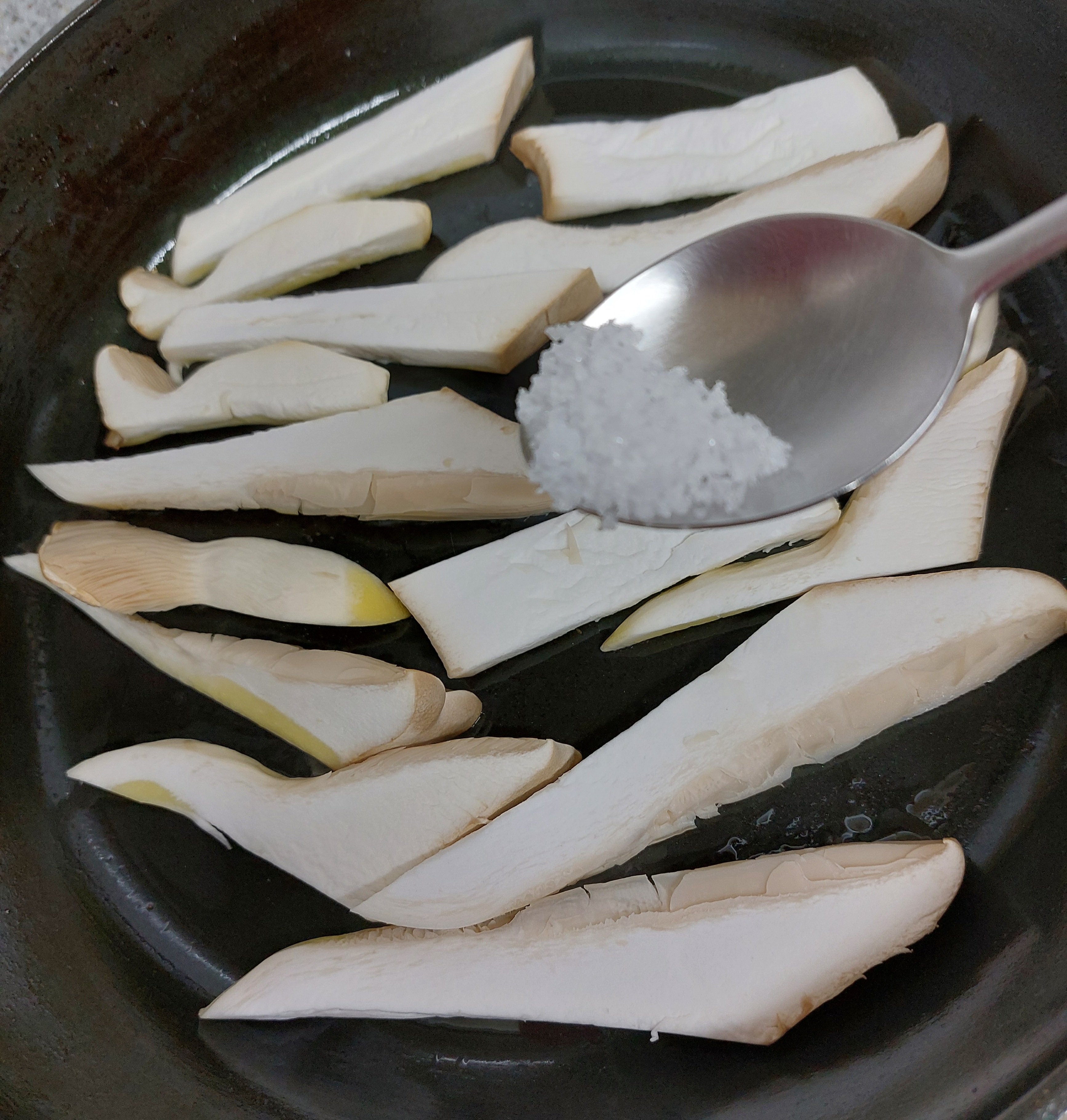 설원버섯을 올려준 후 소금을 뿌려준다.